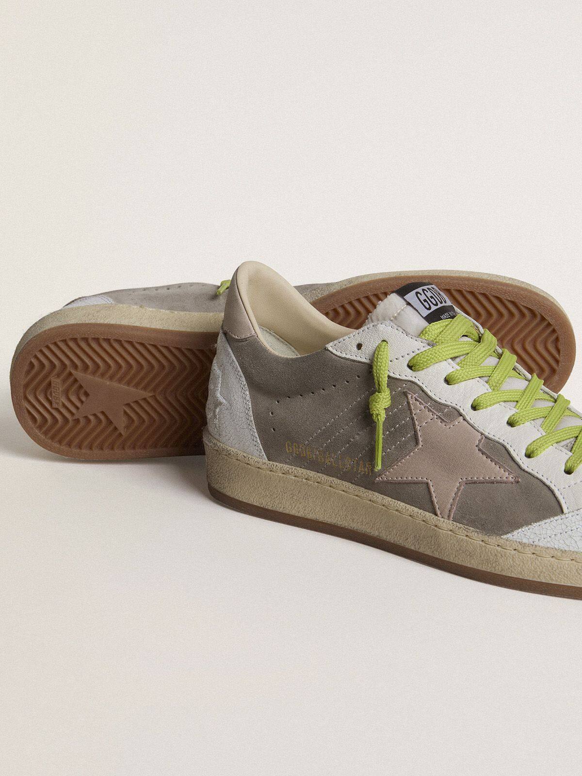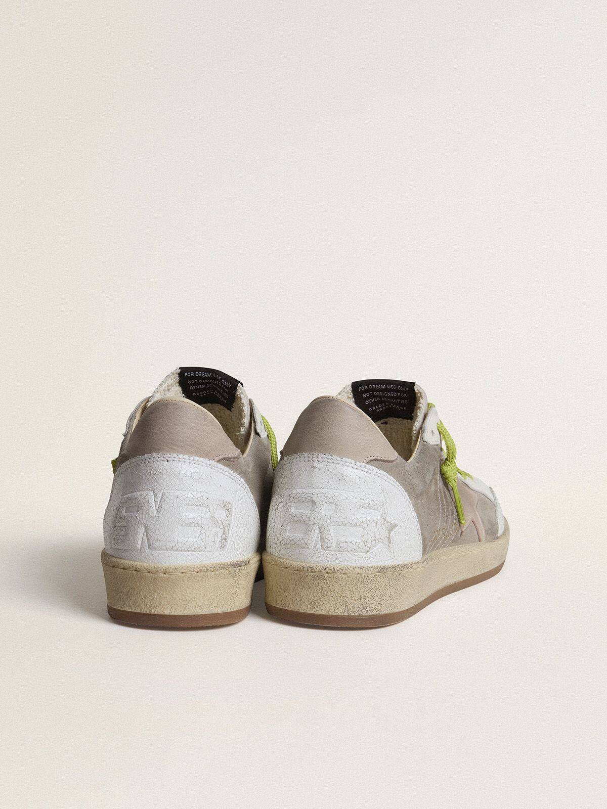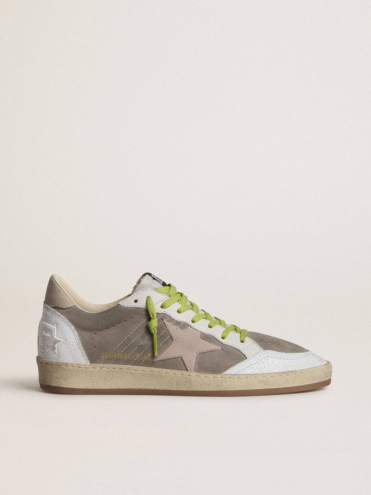 - Parte superior de ante gris con detalles de cuero blanco agrietado