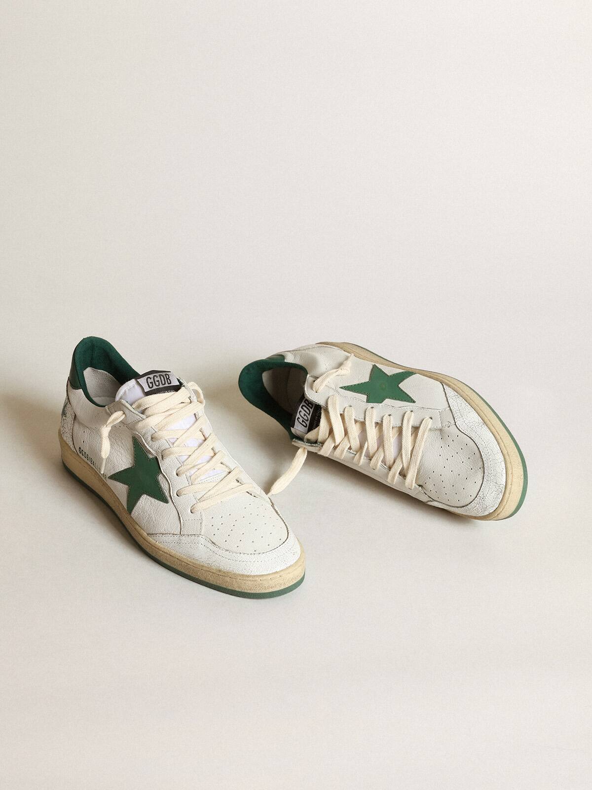 Soñando con los años ochenta. Nuestras zapatillas Ball Star tienen una vibra de universidad americana atrapada entre un tiro de baloncesto y un paseo en patineta. Este modelo para hombres, con un upper de cuero nappa blanco, presenta una estrella y una lengüeta en cuero verde mate y detalles en cuero blanco craquelado, como la puntera y el inserto en la parte trasera. Una suela verde y cordones de color crema añaden el toque final: cosas hermosas que nunca pasan de moda.