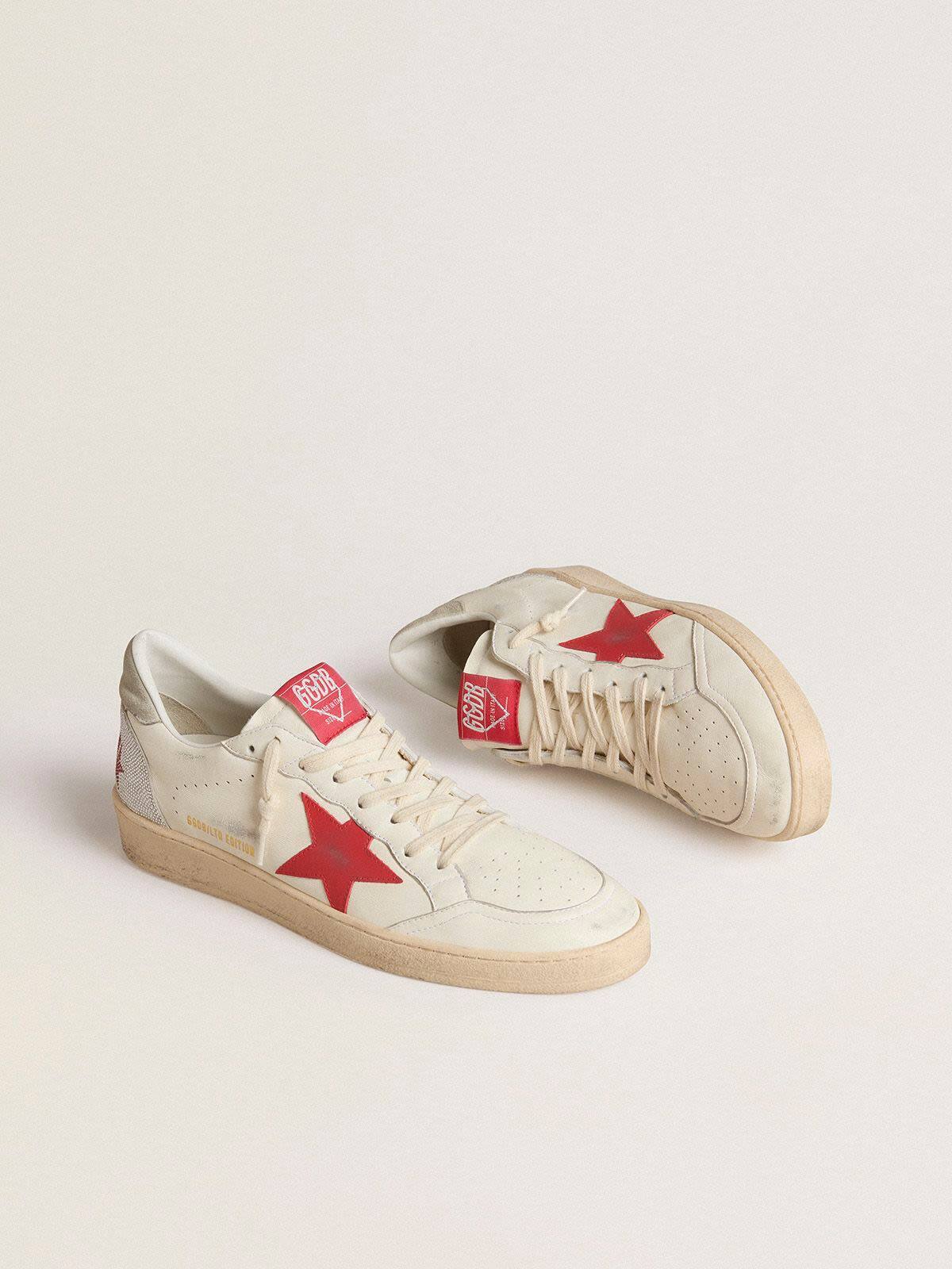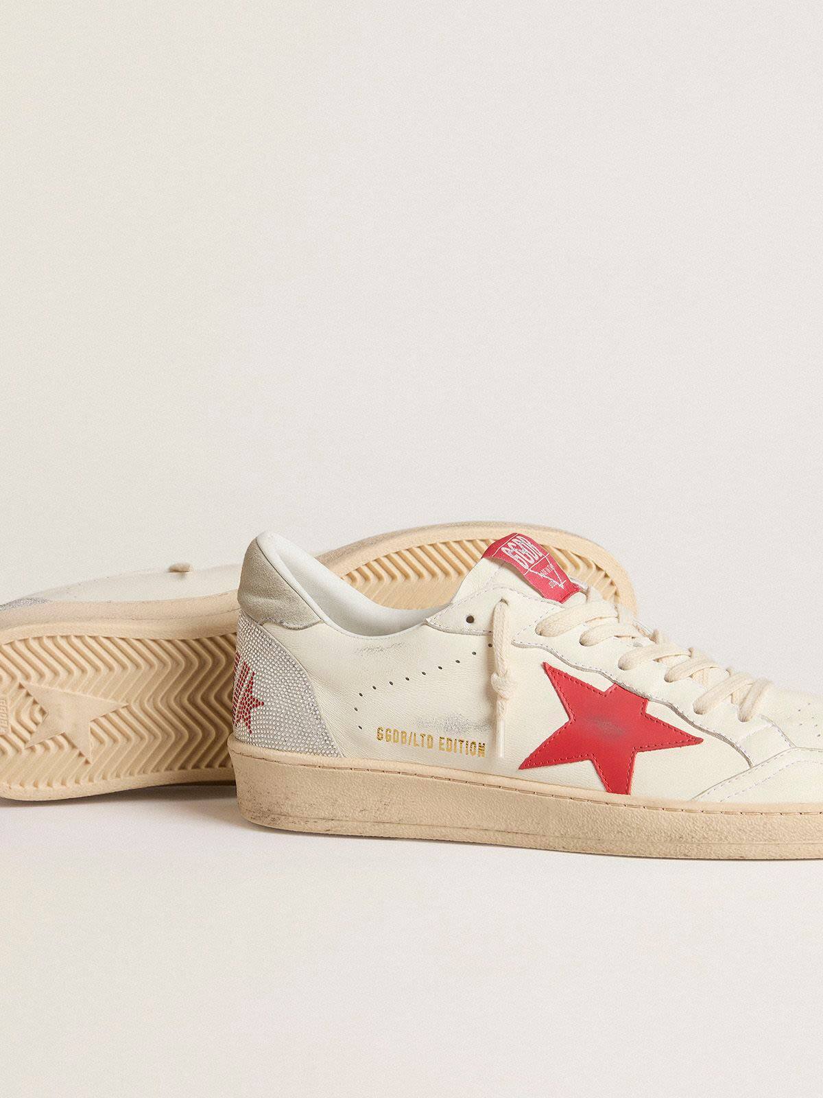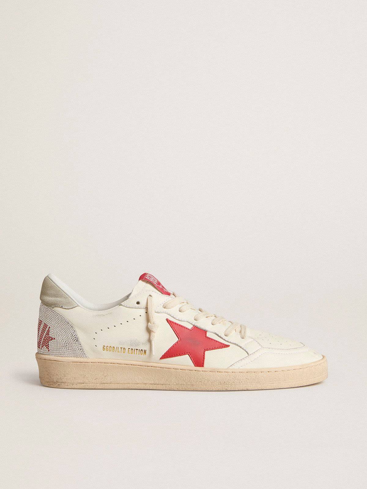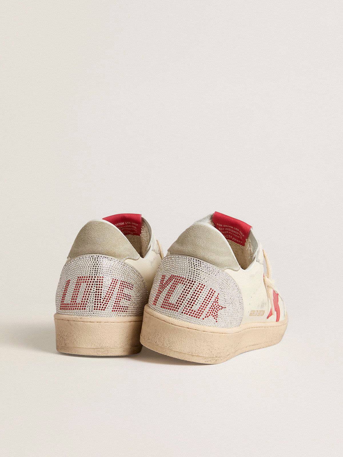 Soñando con los años ochenta. Nuestras zapatillas Ball Star tienen una vibra de universidad americana atrapada entre un tiro de baloncesto y un paseo en patineta. Con una parte superior de cuero blanco, esta versión exclusiva del Día de San Valentín presenta una estrella de cuero rojo y un inserto de cristal Swarovski plateado en la parte posterior. Y como detalle exclusivo, la inscripción 'te amo' en cristales Swarovski rojos en la parte posterior. Los cordones color off-white añaden el toque final.