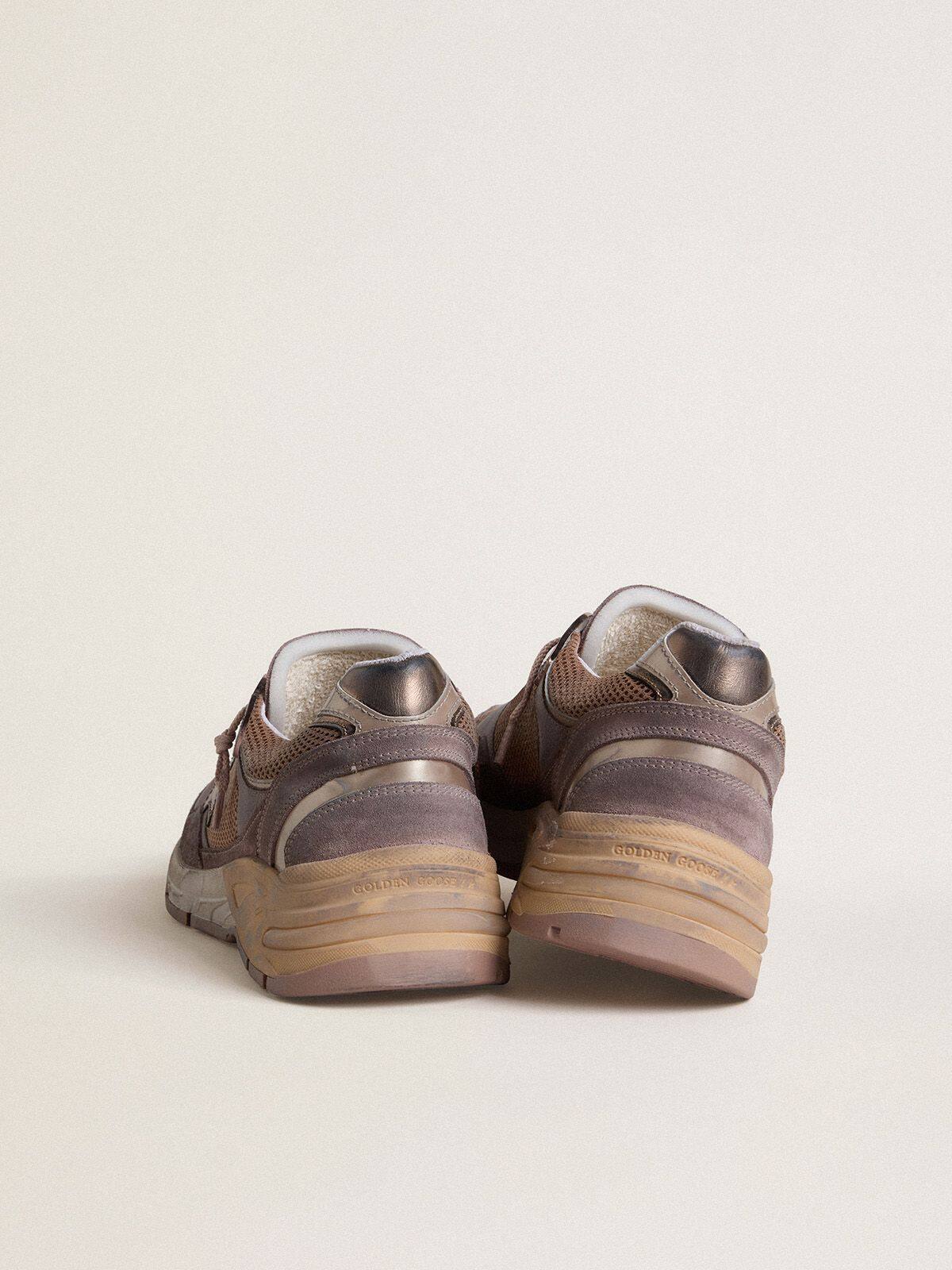 Una alma con una riqueza de historias que contar: nuestras zapatillas Dad-Star tienen un estilo atemporal, creadas para ser transmitidas a través de las generaciones. Con una abundancia de detalles sofisticados, como la suela amarillenta que expresa la idea de colgar tus zapatos al sol, esta versión para hombres presenta una parte superior de ante y malla en color lila con inserciones de tela reflectante acentuadas con una estrella de cuero laminado en color gris metalizado y una lengüeta en el talón. Los ojales y los cordones lila añaden el toque final.