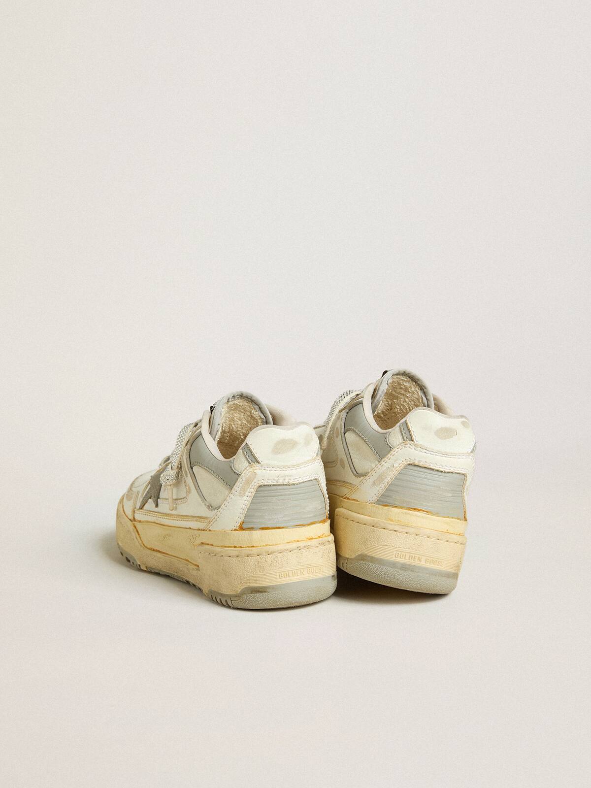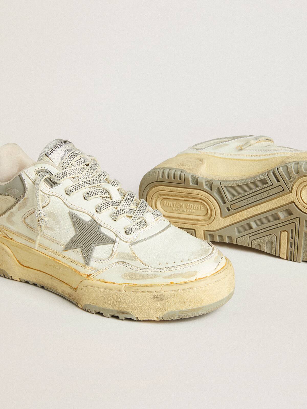 - Lengüeta trasera de cuero gris con cristales de Swarovski