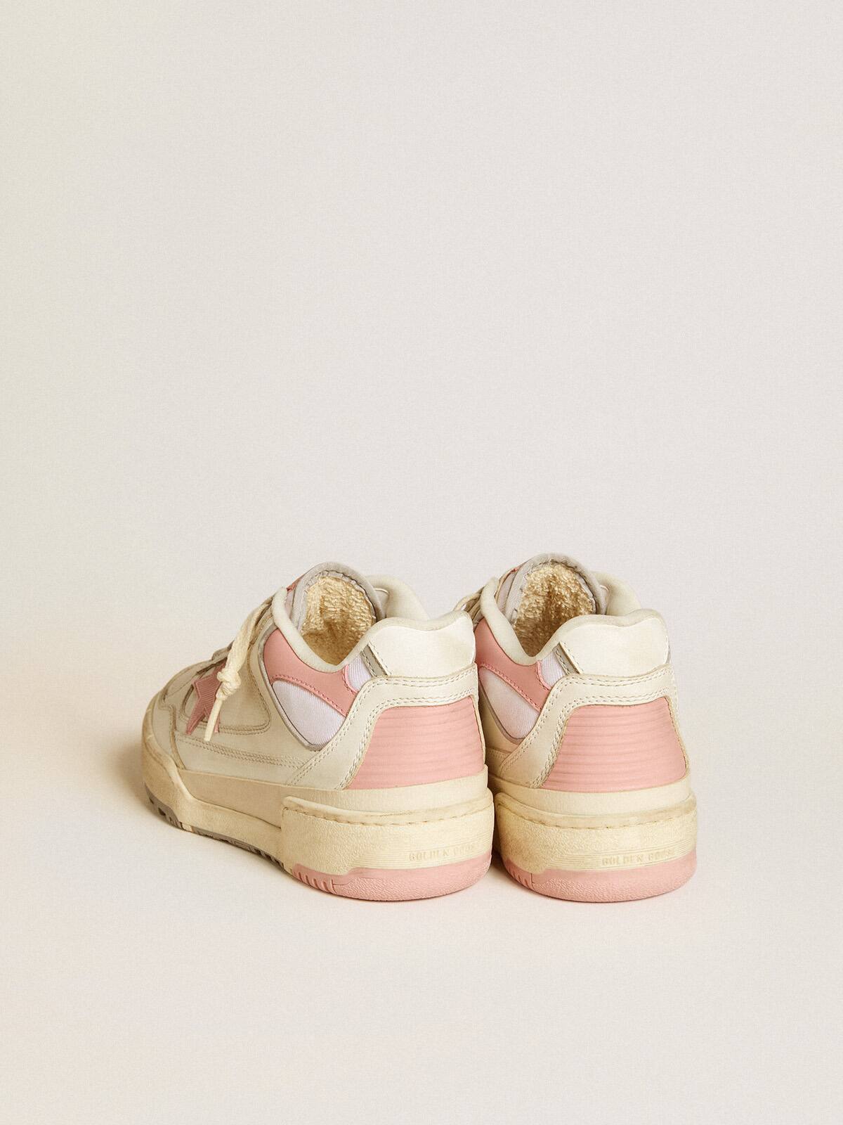 - Inserción de cuero rosa con efecto texturizado en 3D en la parte trasera