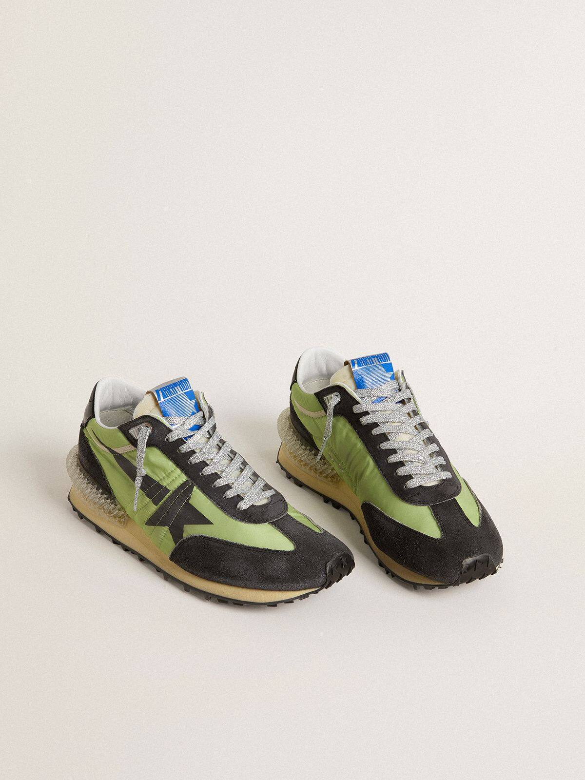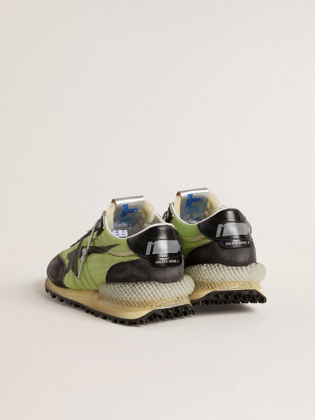 Inspirado en el atletismo, con un toque de los años setenta. Día tras día, nuestras nuevas zapatillas Marathon están diseñadas para mantenerte corriendo tras tus sueños, rindiendo homenaje al maratón que es la vida. Este estilo para hombres presenta una parte superior de nylon verde, una estrella negra y una lengüeta de talón de napa laminada negra. La zona de la lengüeta del talón se caracteriza por la adición de un estabilizador completamente 3D, una característica icónica de esta forma que añade dinamismo y acentúa la amortiguación como nunca antes. El look se completa con cordones de lurex y una suela estrellada que deja una impresión verdaderamente única.