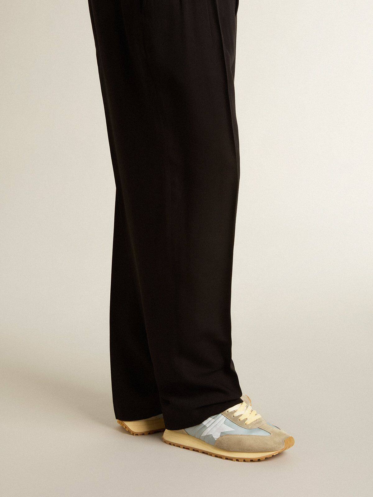 Inspirado en el atletismo, con un toque de los años setenta. Día tras día, nuestras nuevas zapatillas Marathon están diseñadas para mantenerte corriendo tras tus sueños, rindiendo homenaje al maratón que es la vida. Este modelo para hombres presenta una parte superior de nailon, una estrella azul pastel, una lengüeta de talón de napa metálica dorada y una puntera de ante gris. El look se completa con cordones blancos con un aspecto desgastado y una suela estrellada, para dejar una impresión verdaderamente única.