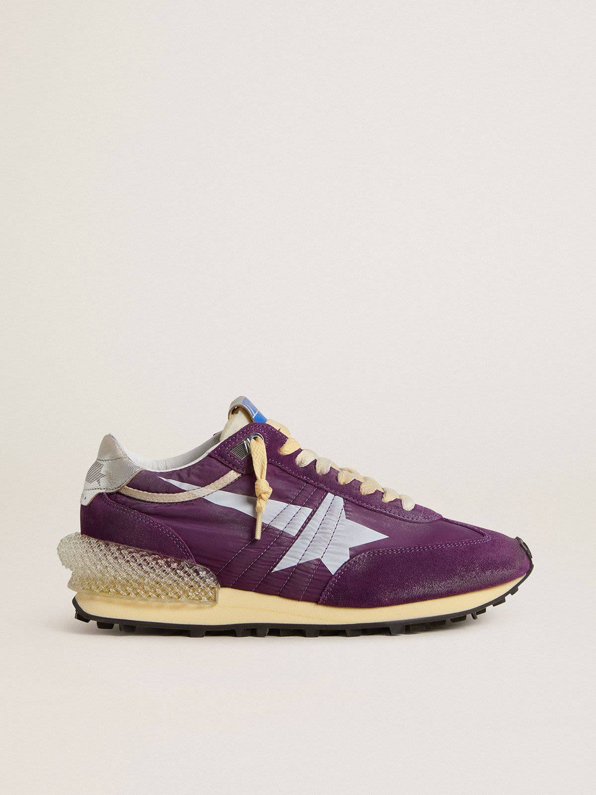 Inspirado en el atletismo, con un toque de los años setenta. Día tras día, nuestras nuevas zapatillas Marathon están diseñadas para mantenerte corriendo tras tus sueños, rindiendo homenaje al maratón que es la vida. Este modelo para hombres presenta una parte superior de nailon púrpura con inserciones de ante púrpura, una estrella blanca y una lengüeta de talón de cuero plateado. La zona de la lengüeta del talón se caracteriza por la adición de un estabilizador completamente 3D, una característica icónica de esta forma que añade dinamismo y acentúa la amortiguación como nunca antes. El aspecto se completa con cordones de color blanco desgastado y una suela estrellada que deja una impresión verdaderamente única.