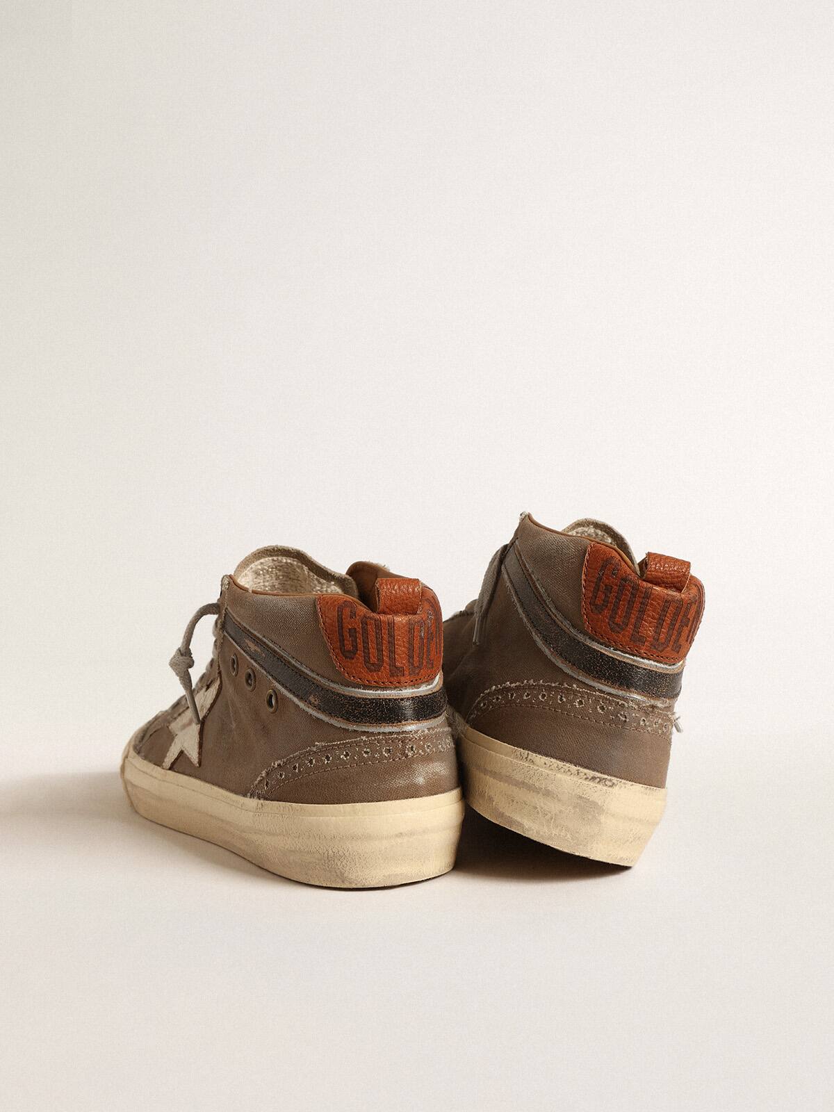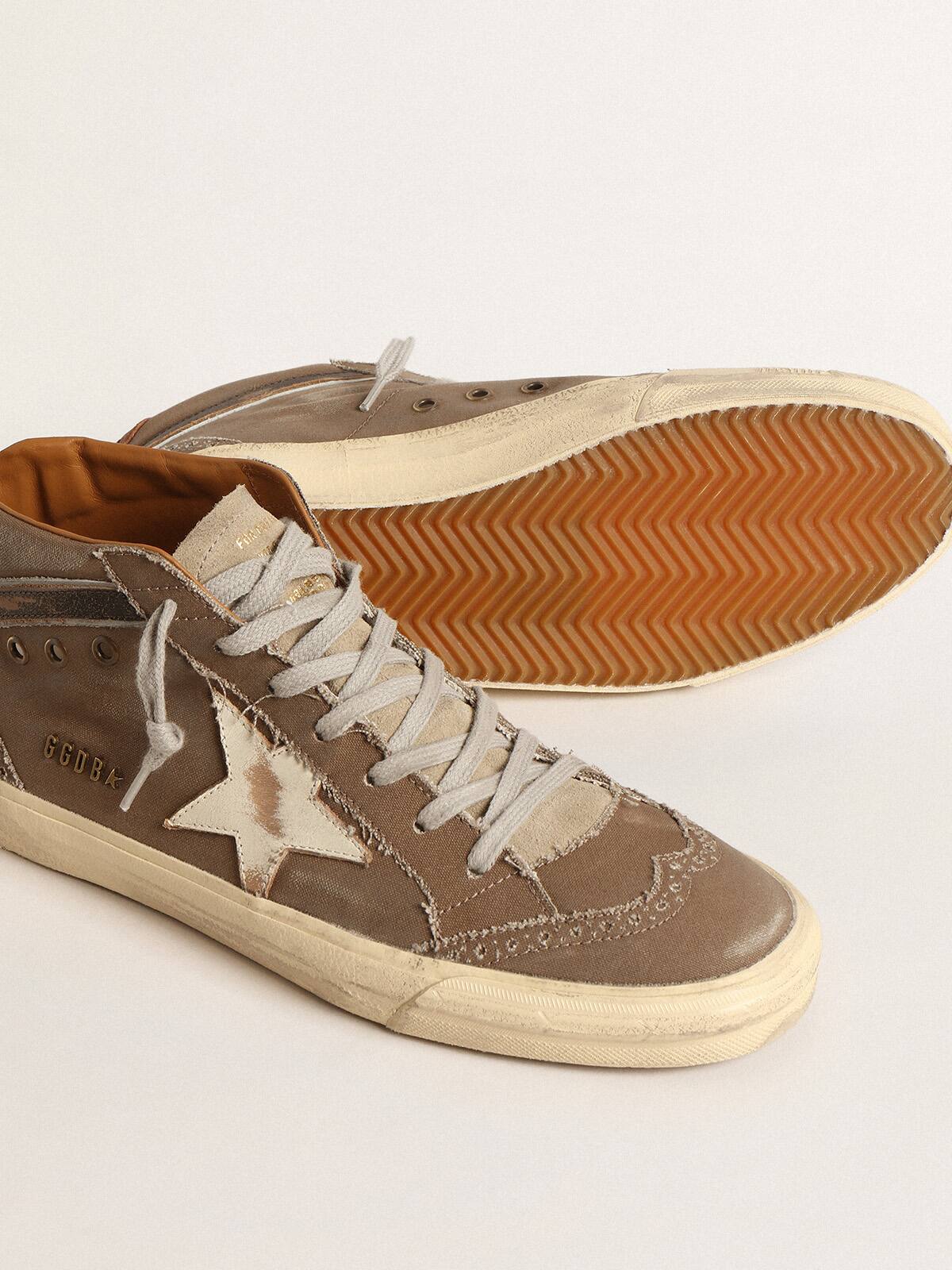Versatilidad elegantemente única: las zapatillas Mid Star adoptan un enfoque refinado a su inspiración de la escena del skate de los años noventa. Con una parte superior de lona verde militar, este modelo LTD presenta detalles de cuero con efecto vintage, como la estrella ecru y el destello negro con bordes de ante plateados. La lengüeta de ante gris paloma, la pestaña del talón de cuero marrón con efecto martillado y los cordones gris hielo completan el look.