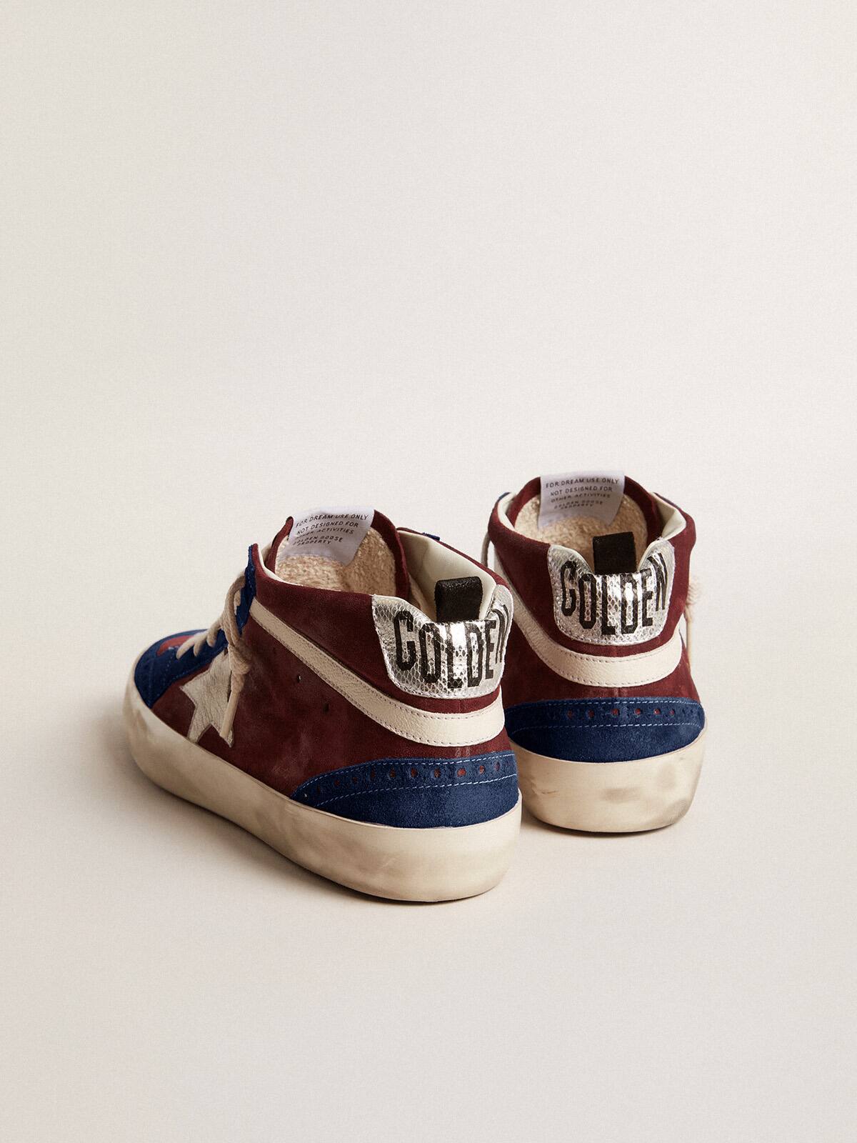 Versatilidad elegantemente única: las zapatillas Mid Star adoptan un enfoque refinado a su inspiración de la escena del skate de los años noventa. Con un upper de ante color burdeos acentuado por inserciones de ante púrpura, este modelo presenta una estrella de cuero napa blanca y un destello. La lengüeta del talón de cuero metálico color plata con estampado de lagarto y los cordones blancos completan el look.