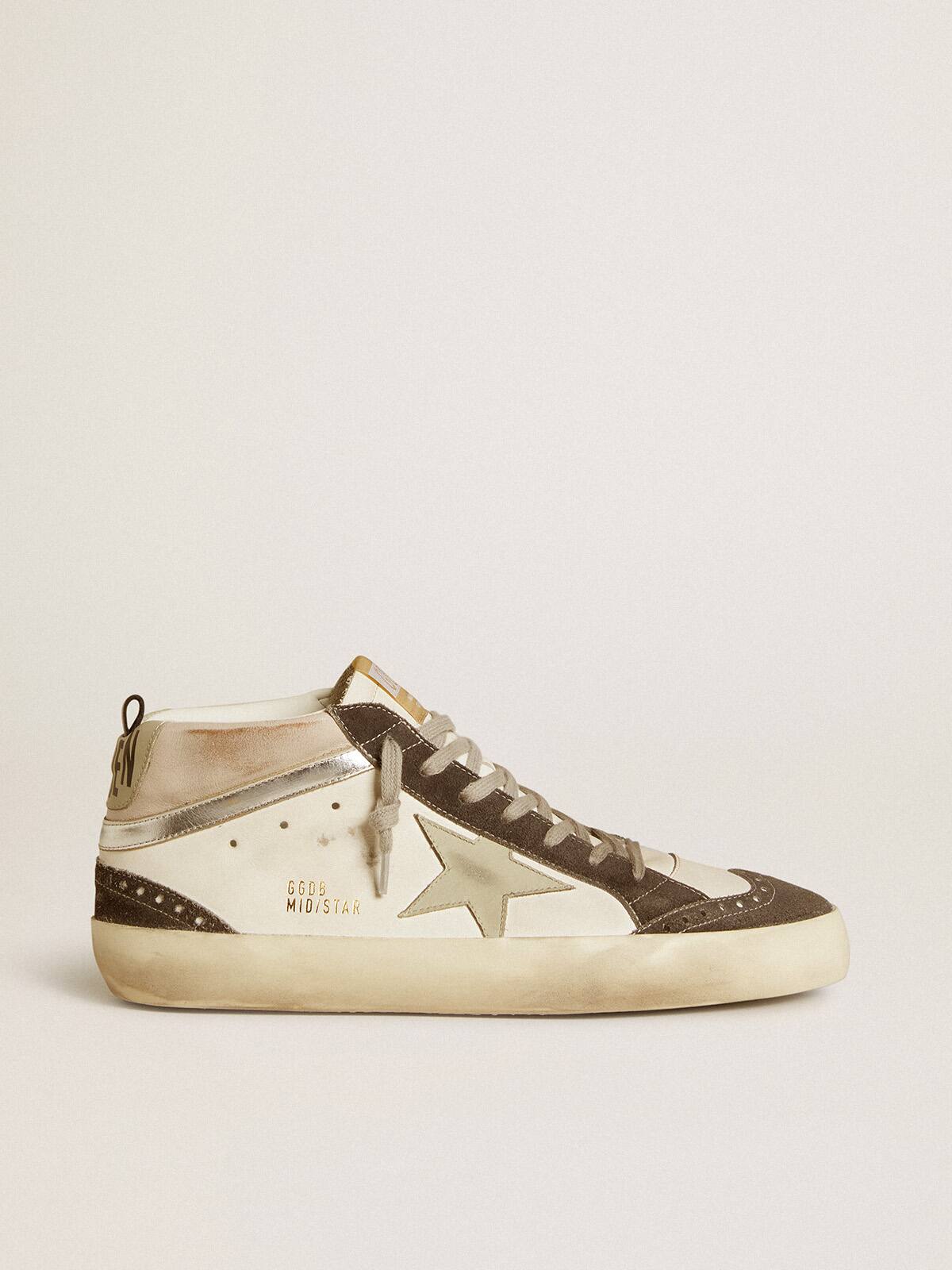 Versatilidad elegantemente única: las zapatillas Mid Star adoptan un enfoque refinado a su inspiración de la escena del skate de los años noventa. Este modelo con una parte superior de cuero blanco presenta una estrella de cuero gris y una lengüeta en el talón, y un destello de cuero metálico plateado. Los insertos de ante negro y los cordones gris hielo completan el look.