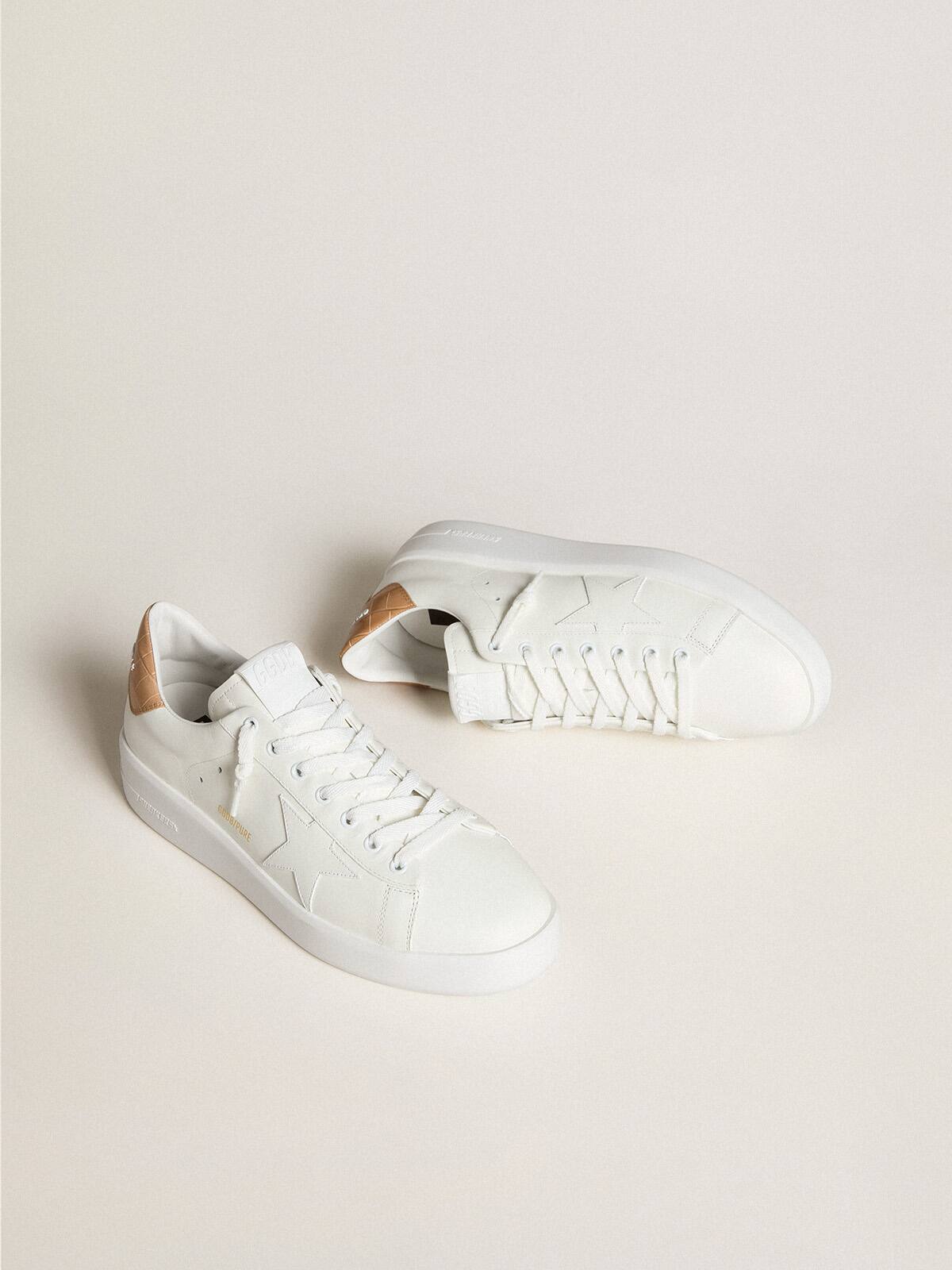Cuando el minimalismo de la forma se encuentra con la fuerza de los detalles: nuestras zapatillas Purestar combinan un estilo discreto con una comodidad extrema gracias a su tecnología de absorción de impactos. Este modelo para hombres, confeccionado en cuero blanco, presenta una estrella de cuero blanco y una lengüeta de talón de cuero con estampado de cocodrilo beige. Los cordones blancos completan el look.