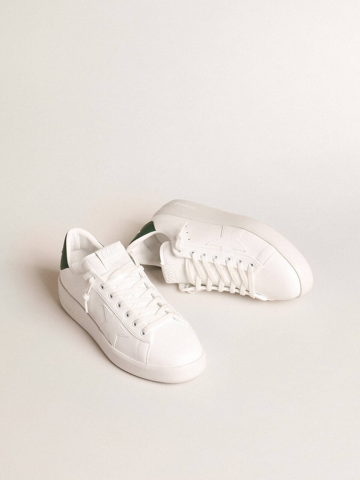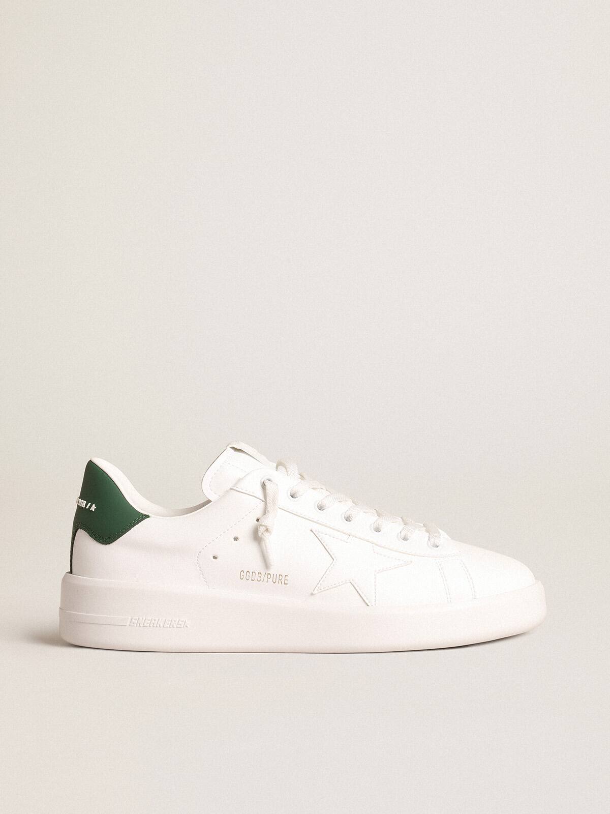 Cuando el minimalismo de la forma se encuentra con la fuerza de los detalles: nuestras zapatillas Purestar combinan un estilo discreto con una comodidad extrema gracias a su tecnología de absorción de impactos. Este modelo, con una parte superior blanca a base de bioplásticos, presenta una estrella blanca a base de bioplásticos y una lengüeta de talón de cuero verde mate. Los cordones blancos completan el look.