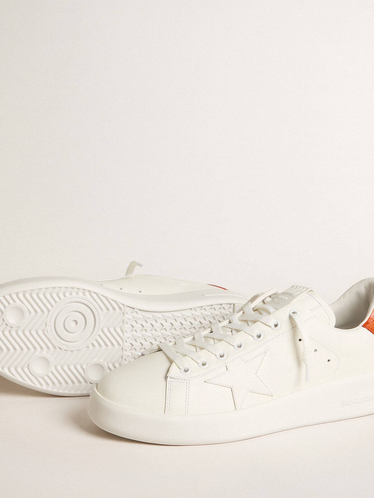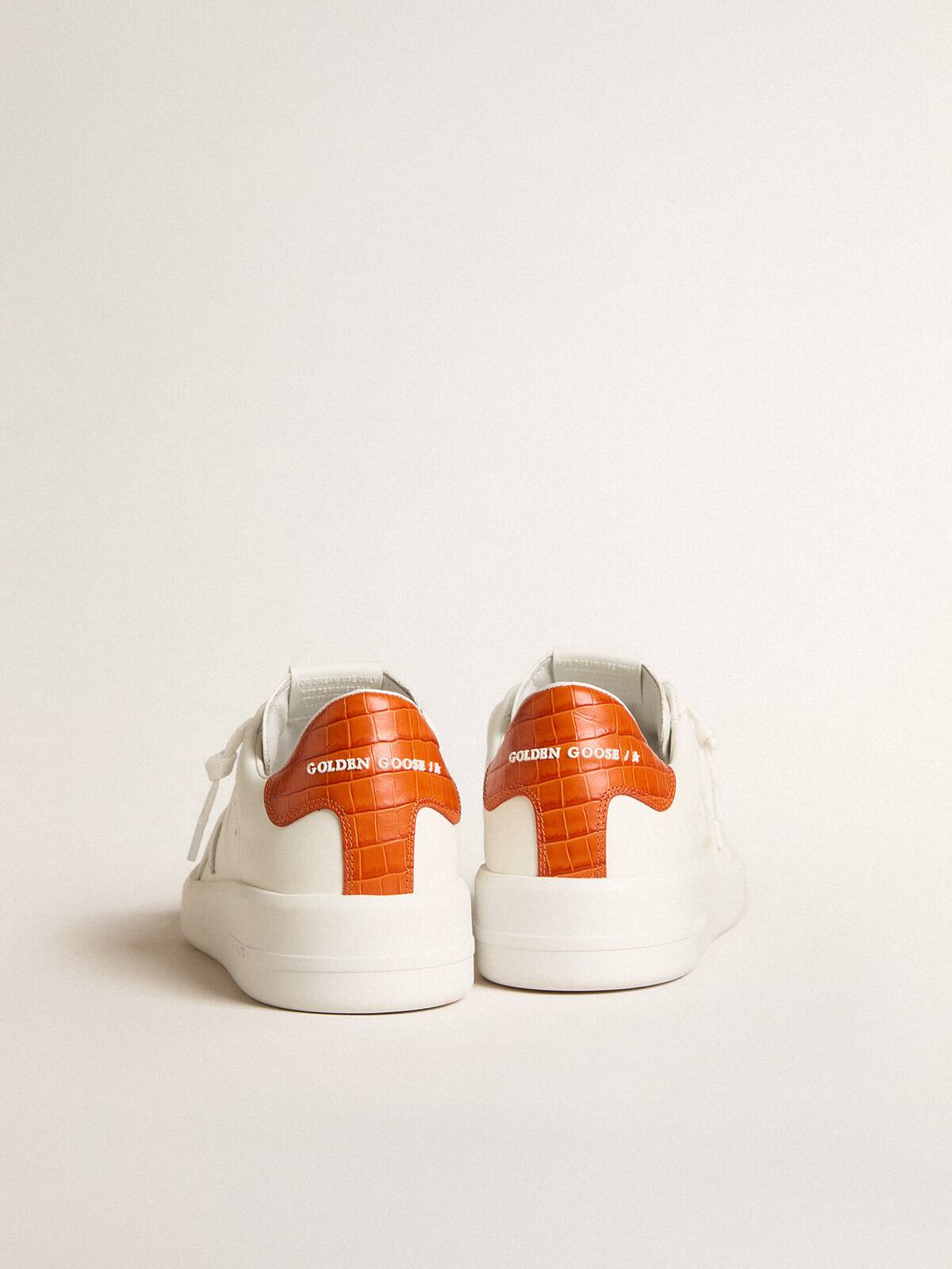 Cuando el minimalismo de la forma se encuentra con la fuerza de los detalles: nuestras zapatillas Purestar combinan un estilo discreto con una comodidad extrema gracias a su tecnología de absorción de impactos. Este modelo para hombres en cuero blanco presenta una estrella de cuero blanco y una lengüeta de talón de cuero con estampado de cocodrilo naranja. Los cordones blancos completan el look.