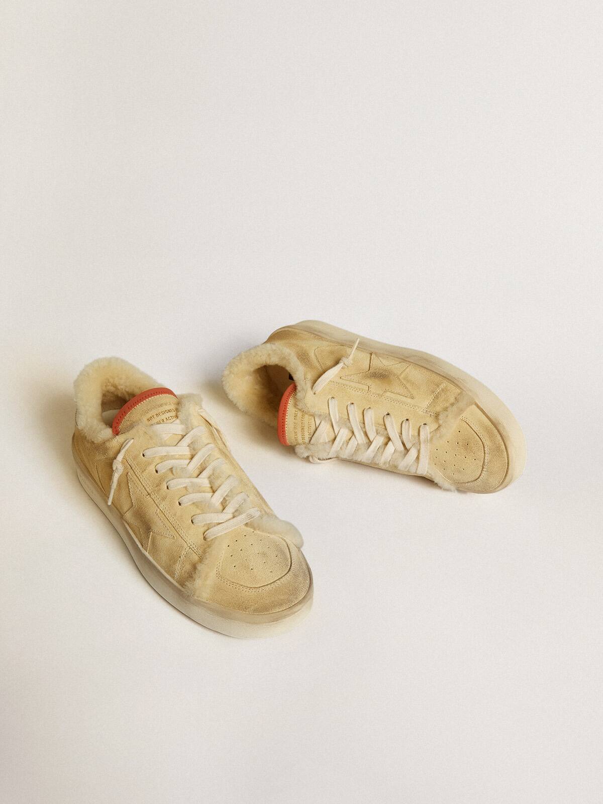 Las gloriosas décadas de los noventa envueltas en una zapatilla. Las zapatillas Stardan rinden homenaje a los íconos del baloncesto de esa década, mientras mantienen un ojo en el presente. Forradas con suave piel de oveja beige, esta versión con parte superior de ante beige presenta una estrella de ante en tono sobre tono y una lengüeta de talón de cuero blanco. Y los cordones color crema añaden el toque final.