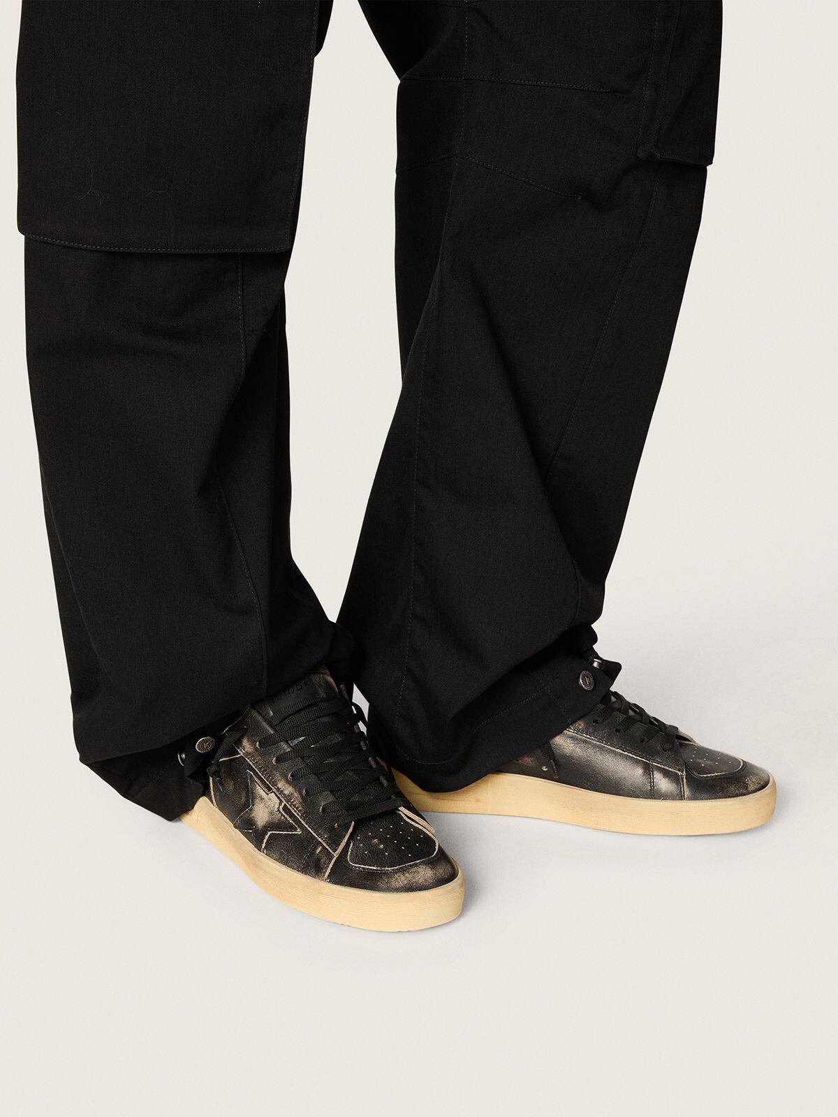 Las gloriosas décadas de los noventa envueltas en una zapatilla. Las zapatillas Stardan rinden homenaje a los íconos del baloncesto de esa década, mientras mantienen un ojo en el presente. En esta versión para hombres, la parte superior de cuero negro con un efecto desgastado presenta una estrella de cuero negro y una lengüeta en el talón de cuero negro. Y los cordones negros añaden el toque final.