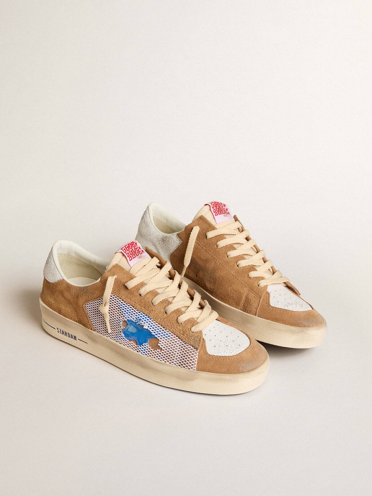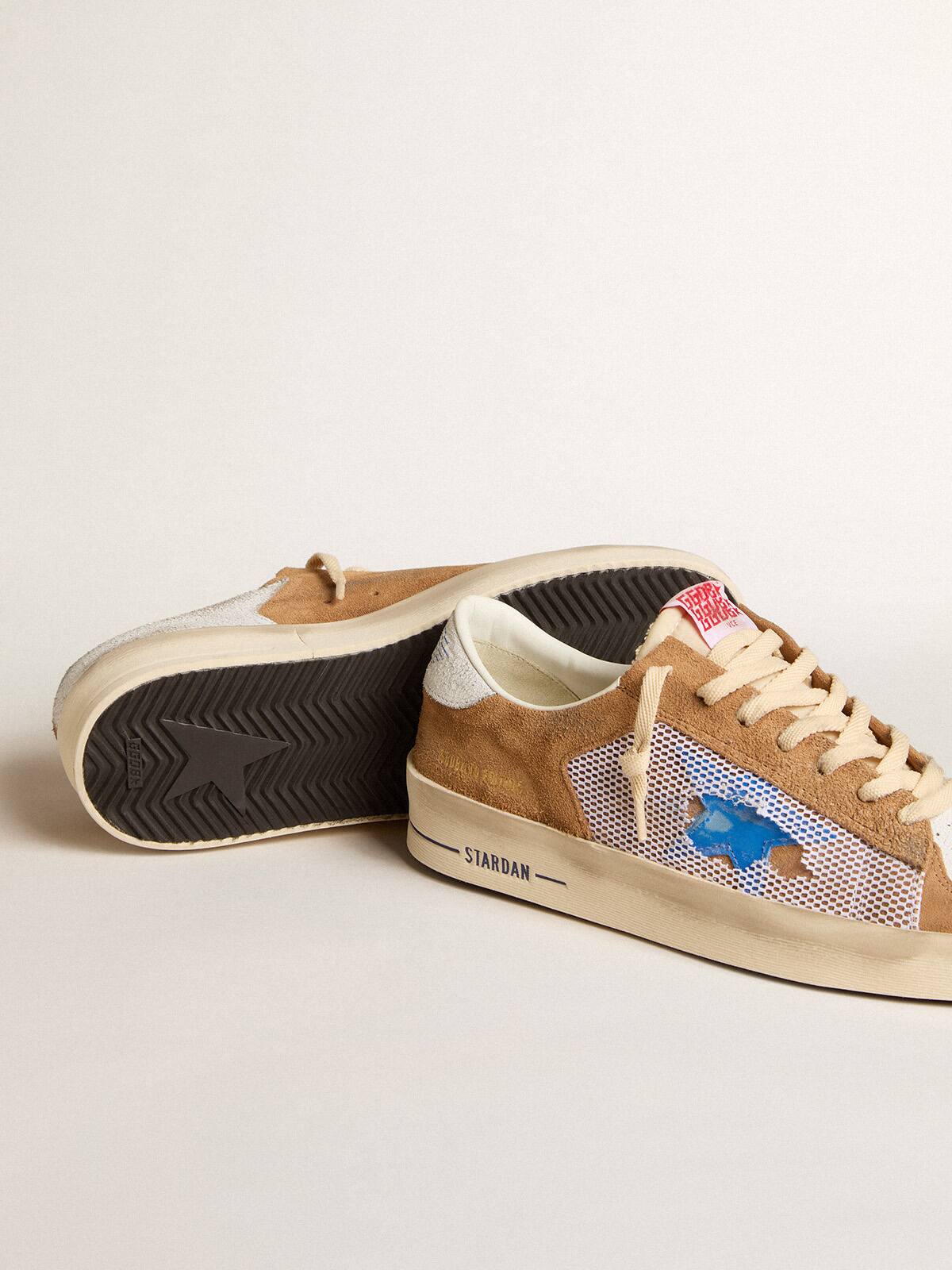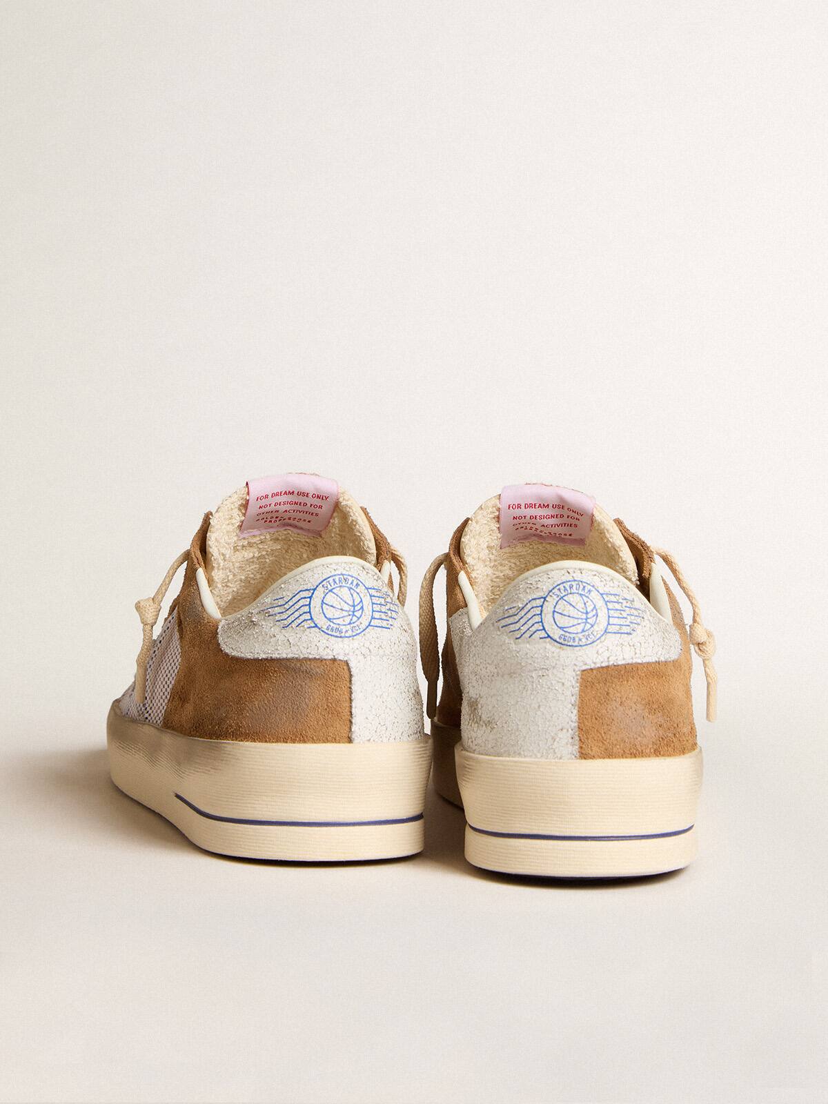 - Parte superior de ante color tabaco con inserciones de malla blanca
