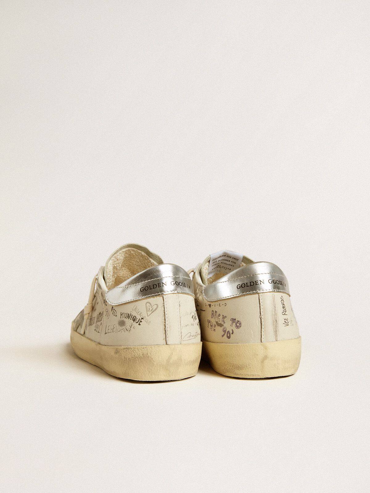 Un ícono atemporal pero que está en constante evolución. En Golden, nos encanta tomar nuestros clásicos y reinventarlos todo el tiempo, siempre desde un nuevo ángulo. Estas Super-Star para hombres con una parte superior de cuero blanco están destacadas por un motivo de letras en contraste en toda la superficie, una estrella de ante gris hielo y una lengüeta de talón de cuero metálico plateado. La lengüeta de ante gris hielo y los cordones blancos añaden el toque final.
