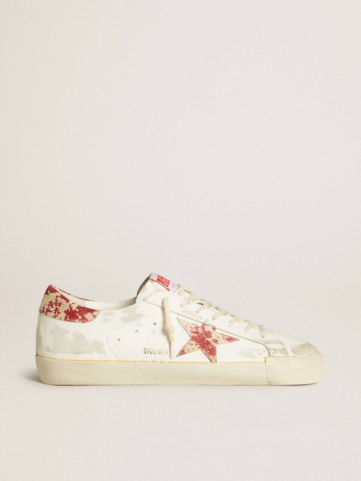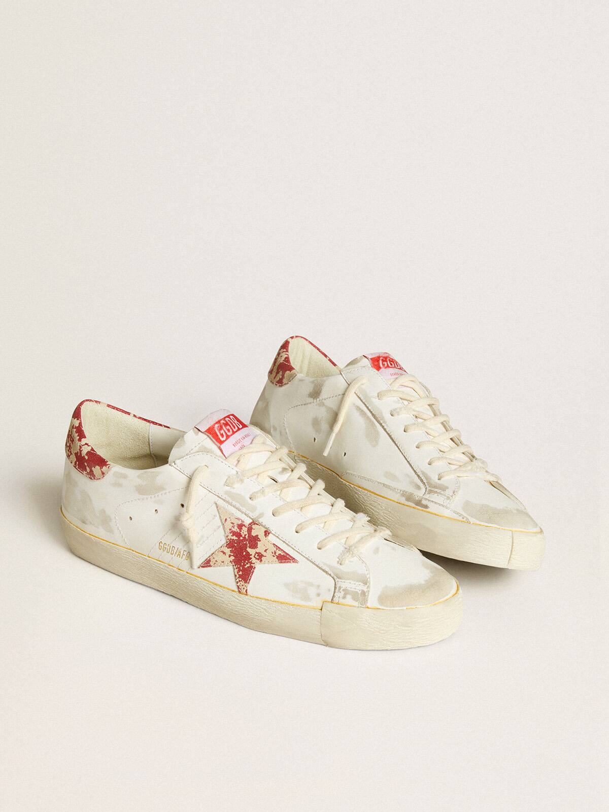 Un ícono atemporal pero que está en constante evolución. En Golden, nos encanta tomar nuestros clásicos y reinventarlos todo el tiempo, siempre desde un nuevo ángulo. Esta versión para hombres con una parte superior de cuero vintage blanco presenta una estrella y una lengüeta del talón con pulverizaciones rojas que le dan a la zapatilla un efecto oxidado. Y los cordones color crema añaden el toque final.