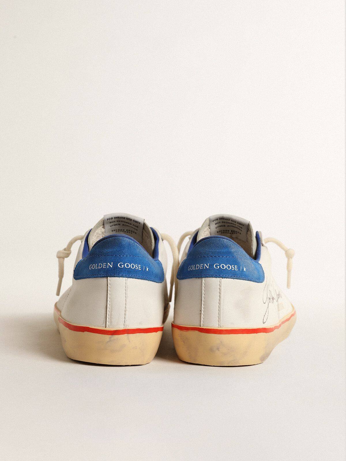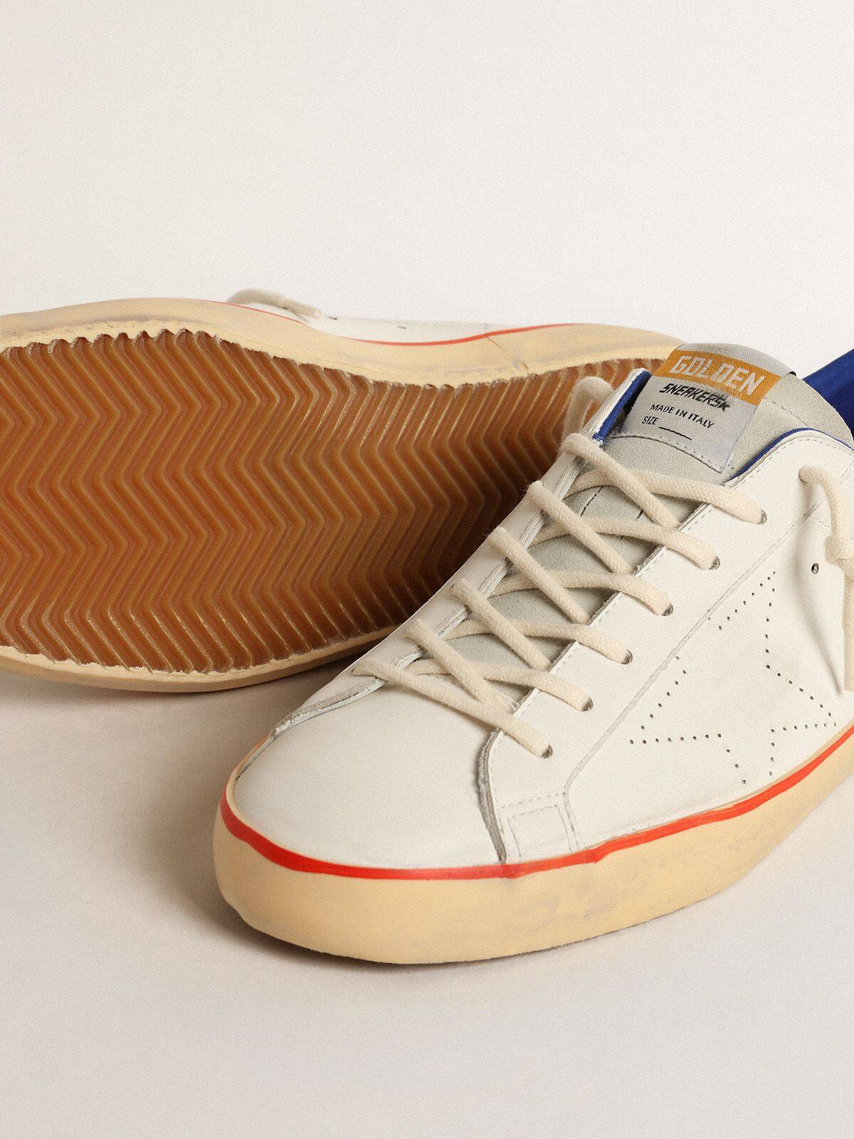 Un ícono atemporal pero que está en constante evolución. En Golden, nos encanta tomar nuestros clásicos y reinventarlos todo el tiempo, siempre desde un nuevo ángulo. Estas Super-Star para hombres con una parte superior de cuero blanco presentan una estrella perforada, una lengüeta de talón de gamuza azul y un contraste de palabras en negro de Golden Goose. La lengüeta de gamuza gris hielo, los cordones blancos y la franja roja en la suela añaden el toque final.