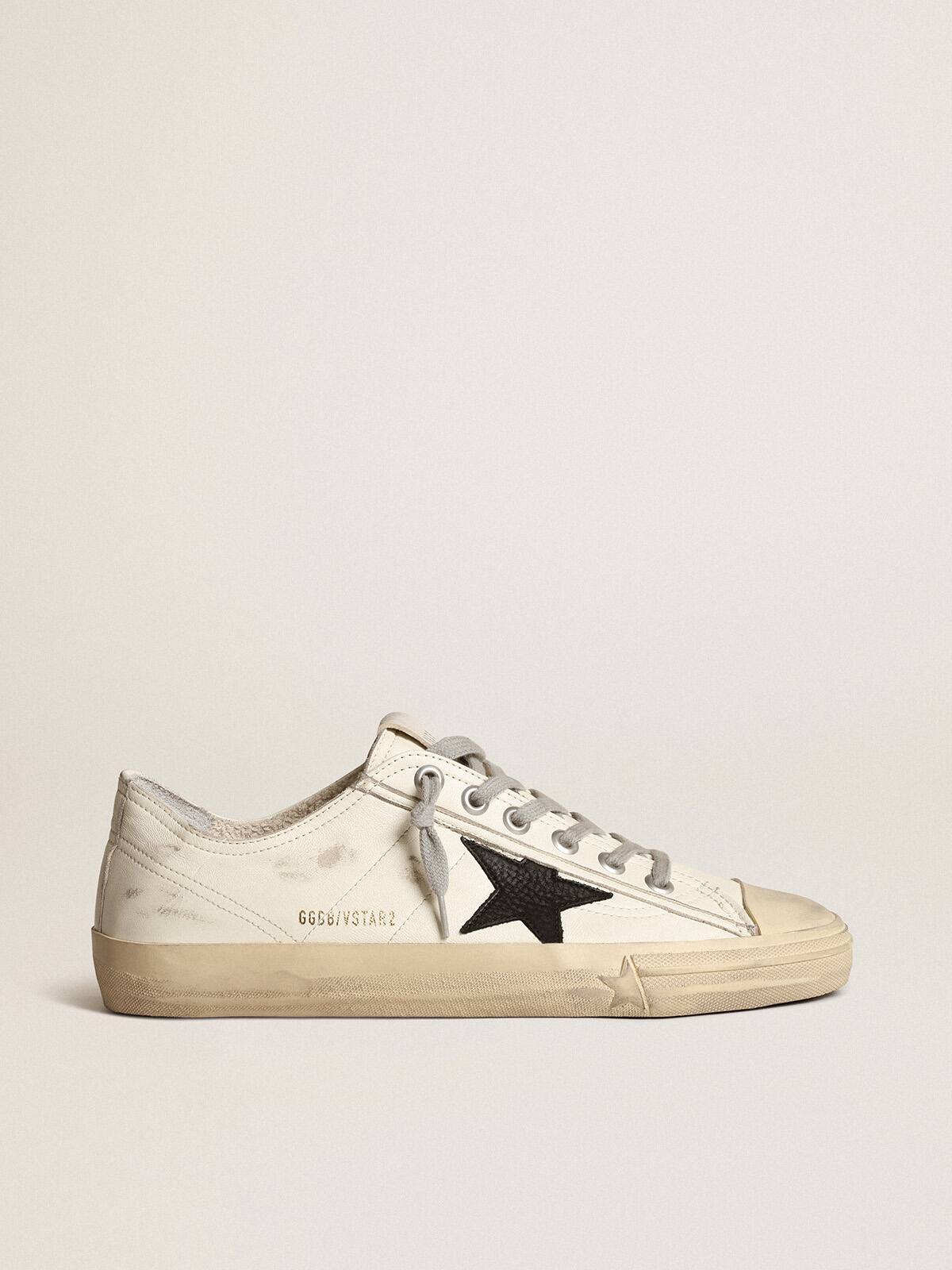 Belleza que radica en la simplicidad: en nuestras zapatillas V-Star, una forma esencial se encuentra con un detalle elegante. Este modelo con un upper de cuero nappa blanco presenta una estrella de cuero nubuck negro. Y los cordones grises añaden un toque final elegante.