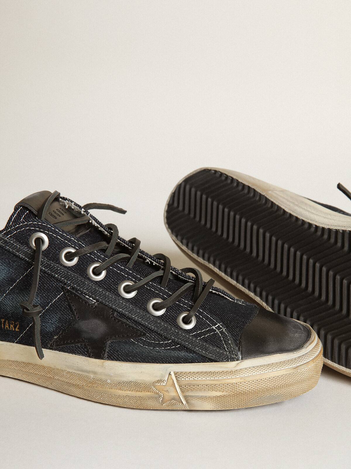 Belleza que radica en la simplicidad: en nuestras zapatillas V-Star, una forma esencial se encuentra con un detalle elegante. Este modelo con un upper de denim azul medianoche presenta una estrella y una puntera de cuero negro y una lengüeta de grosgrain negro en el talón. Y los cordones de cuero negro añaden un toque final elegante.